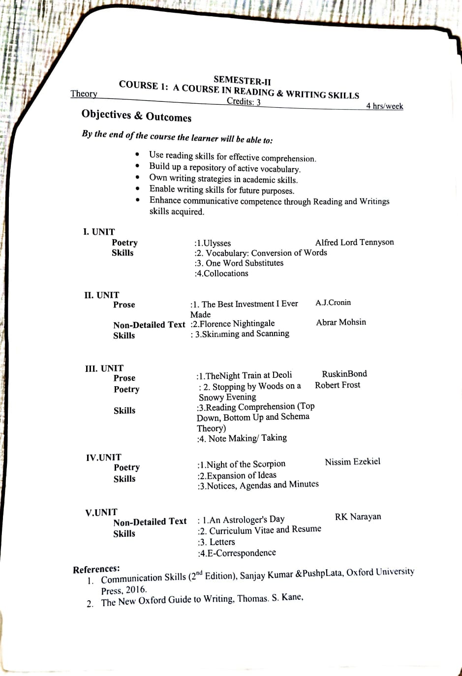 ENGLISH SEM-2 SYLLABUS